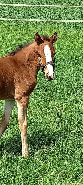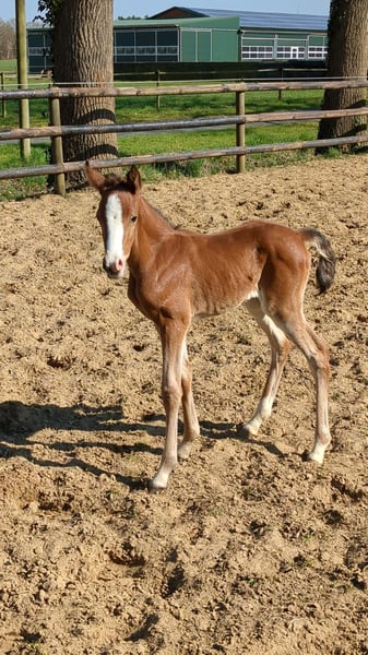 Hermoso potro de yegua de Dream in Gold AT x Dumbledor AT nacido el 30.3.25, de color marrón.