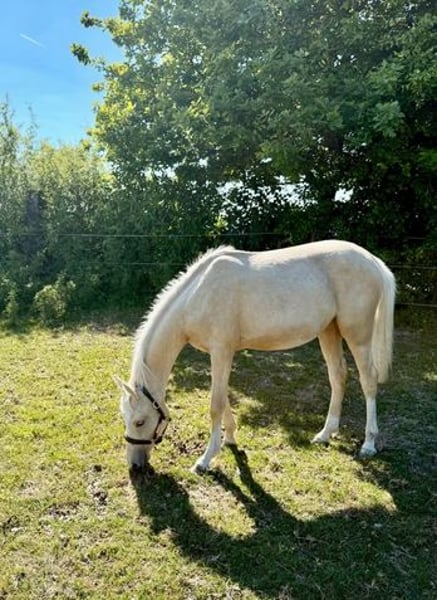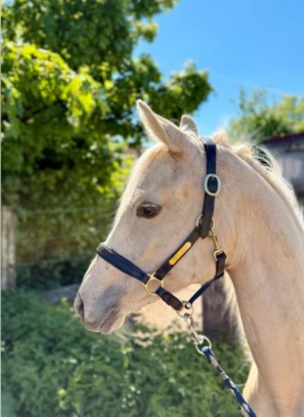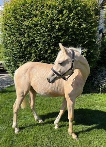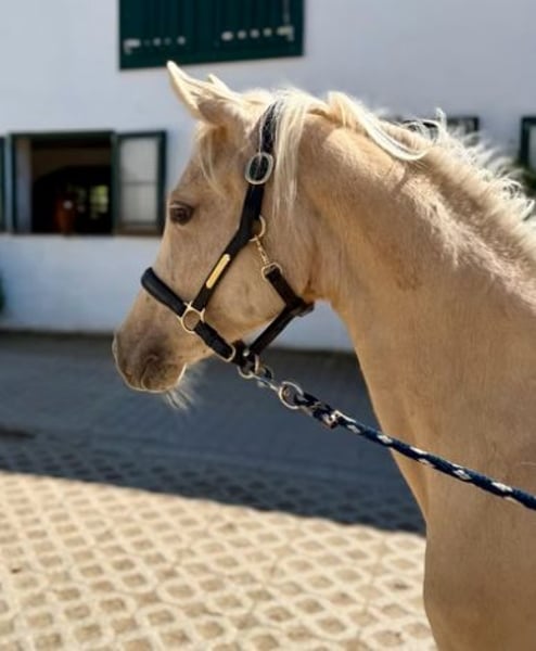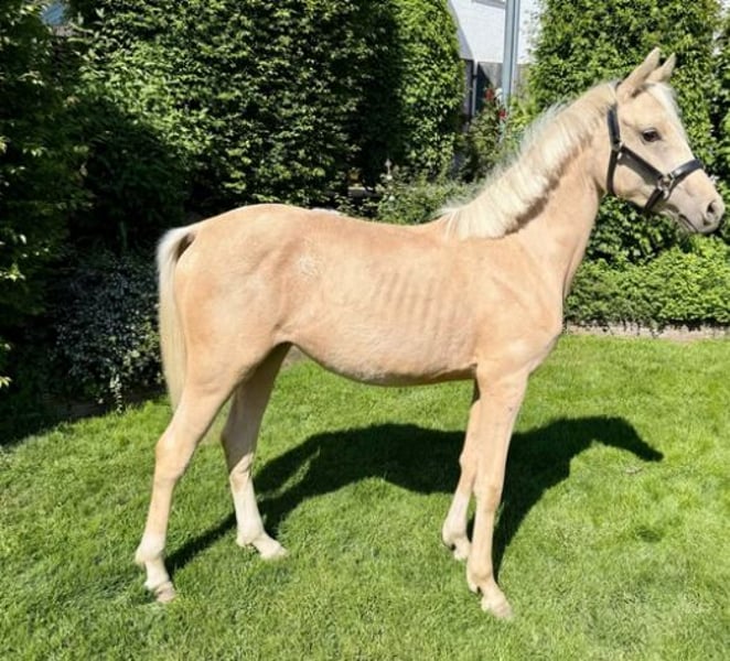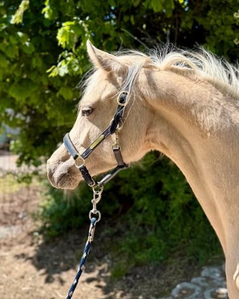 Zum Verkauf steht eine Deutsche Reitponystute in schicker Palomino-Jacke. "Dear Lady Whistledown" ist bereits im Januar 2024 geboren und zeigt sich im Umgang super lieb, lernwillig und verschmust. Lässt sich führen, anbinden und auch abspritzen ist kein Problem. Sie hat nicht nur einen tollen Charakter, sonder auch drei sehr gute Grundgangarten. Vater Donnertraum (Donnerwetter x Nurejew) war selbst hocherfogreich bei den Bundeschampionaten und später im FEI Dressursport. U. a. Europameister und Niederländischer Meister. Seine Nachkommen überzeugen in Zucht wie Sport und zeichnen sich durch Rittigkeit und Kopfklarheit aus. Muttervater Jacky Boy war Körsieger und Bronzmedalliengewinner in Warendorf. Seine Nachkommen sind in beiden Sparten erfolgreich unterwegs und bestechen durch Herz und Leistungswillen. Der Mutterstamm wird über Cassini/Valido/Nadler I mit absoluten Rittigkeitsgaranten abgesichert. Vater und Muttervater ECVM frei geröngt.