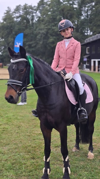 Capri Sonne is a well-trained, reliable children's pony with competition experience. She consistently demonstrates good manners, is rideable, and focused—both in daily training and in the show ring. She is enthusiastic over jumps and confident under saddle. Recently, she successfully completed the Riding Badge Level 5. In the past, she competed up to Class A** in show jumping and Class A in dressage. Due to her temperament, training, and experience, Capri Sonne is the ideal pony for children. Contact only by phone.