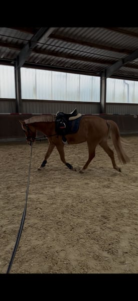 Our beautiful 3-year-old pony mare is looking for a loving new home. She has been gently backed and consistently shows herself to be very well-behaved, balanced, and resilient. She has no vices such as bucking and handles everything calmly and with motivation. Our 11-year-old son rides her regularly, and she always remains patient and reliable. Despite her young age, she is already a true family pony with heart and character. Currently, she is still in training and is actively growing and developing. She is approximately 14 hands (140 cm) tall at the moment. With further time and gentle encouragement, she will undoubtedly continue to develop nicely—both physically and in her riding abilities. Pedigree: Sire: Donatelli Dam Sire: Dornik B Dam: Dynamik Star This lineage promises not only quality but also rideability and willingness to perform—combined with a wonderful pony character that truly convinces! A young talent with excellent potential—ideal for someone who enjoys further training and building a trusting partnership. Serious inquiries are welcome by phone or message!