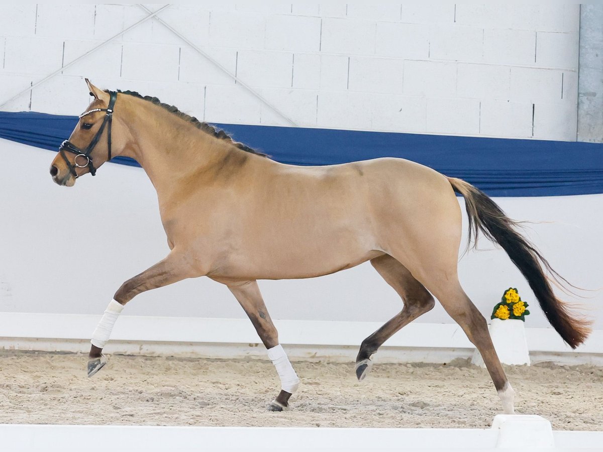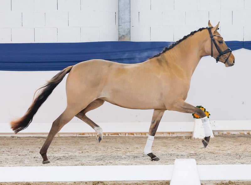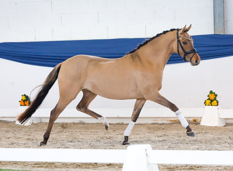 In unserer Kollektion stehen streng selektierte Youngster f�r alle Anspr�che: Ausbildungs-, Zucht- und Kinderponys Hier gelangen Sie zur Gesamtkollektion: https://ponyforum.auction Eine wunderschöne Ponyprinzessin steht mit der dreijährigen Braunfalbstute Dresscode Delia in unserer Kollektion. Sie ist ein äußerst typvolles und elegantes Pony, dabei passend im Endmaß stehend und top modelliert. Delia ist super aufmerksam in der Zusammenarbeit mit Menschen und ein absolutes Musterbeispiel eines jungen Ponys! Ihr Vater Diamantino Gold konnte sich bereits sechsjährig in Dressurpferdeprüfungen der Klasse L in die Erfolgslisten eintragen. Der Muttervater D-Power AT war Körungssieger in Westfalen und erfolgreich in DRE L. Aus dem Mutterstamm entspringen viele Dressurponys, die grade unter jungen Reitern erfolgreich im Sport unterwegs sind – so zb Nora Naseweis (DRE L), Dear Bönni (DRE L), Dear Danny (DRE M).