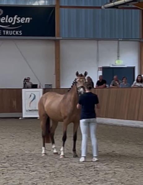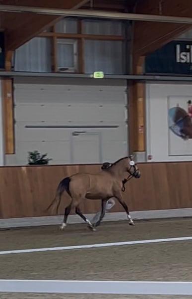 **Te Koop: Duitse Rijpony Merrie** Te koop is een veelbelovende Duitse Rijpony merrie, geboren in 2022. Ze heeft een prachtige buckskin kleur en een schofthoogte van 148 cm. In juli heeft ze de verenigingprijs ontvangen, waardoor ze zeker ook interessant is voor de fokkerij. Deze getalenteerde merrie is ideaal voor alle takken van de paardensport en toont al veelbelovende vooruitgang tijdens het inrijden (05.-07.2025, momenteel weer op de wei). Ze is braaf in de omgang, goed opgeleid en heeft een vriendelijk karakter, wat haar tot een ideale partner voor ruiters maakt. Op dit moment zou, gezien haar leeftijd, een ervaren ruiter of een moeder-kind combinatie ideaal zijn. Ze is goed gesocialiseerd en kent de omgang met andere paarden. Onze merrie heeft een groot potentieel en kijkt ernaar uit om samen met haar nieuwe ruiter te groeien en successen te vieren. Helaas ontbreekt het mijn dochter en mij aan tijd en hebben we, met pijn in ons hart, besloten om haar te verkopen, zodat ze in haar nieuwe thuis verder ontwikkeld kan worden. Plaats boven prijs. Handelaren zijn uitgesloten. Bij interesse of verdere vragen kunt u gerust contact met ons opnemen!