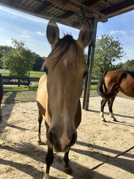 **For Sale: German Riding Pony Mare** For sale is a promising German Riding Pony mare, born in 2022. She presents herself in a beautiful buckskin color and has a height of 148 cm. In July, she received the association premium, making her certainly interesting for breeding as well. This talented mare is ideal for all areas of riding and already shows promising approaches during the initial training (05.-07.2025, currently back in the pasture). She is well-mannered, well-educated, and has a friendly character that makes her an ideal partner for riders. At the moment, due to her age, an experienced rider or a mother-child duo would certainly be ideal. She is well-socialized and is familiar with handling other horses. Our mare has great potential and looks forward to growing and celebrating successes with her new rider. Unfortunately, my daughter and I lack the time, and we have made the difficult decision to sell her so that she can continue to be developed in her new home. Quality over price. Dealers are excluded. If you are interested or have any further questions, please feel free to contact us!