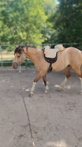 Unsere liebe Jungstute in absolut rarer Sonderfarbe sucht nach ihrem 5-Sterne-Zuhause. Wer einen Farbtupfer für den gehobenen Freizeitsport sucht, ist bei ihr richtig. Ein paar Eckdaten zu ihr: - robust im Herdenverband aufgewachsen - kennt Offenstall/ nachts Box - ist sehr dem Menschen zugewandt - ist verladefromm und brav bei der Hufpflege - ist longiert, kennt Arbeit im Roundpen, Sattel, Kappzaum, Knotenhalfter - hat sehr schöne Bewegungen und baut schnell Muskulatur auf - ist sehr gelehrig: kann auf feine Kommandos Schenkelweichen, Konterschulterherein, Hinlegen, Kompliment angefangen - kennt Spaziergänge und zeigt sich hier ruhig und unerschrocken -ist gesundheitlich regelmäßig durchgecheckt und altersgemäß geimpft, bei uns war sie nie krank Gezogen wurde sie in Deutschland auf dem Gestüt Zollmann, ihre Mutter ist eine RP-Stute, ihr Papa der homozygot vererbende Grullo-Paint-Hengst Pepsi. Im März wird sie dreijährig und wäre bereit zum schonenenden Anreiten/ Gewöhnen ans Reitergewicht. Die Vorarbeit hierfür ist bereits geleistet. Auf Wunsch kann dies auch bei uns vor Ort noch erfolgen. Für weitere Infos, Videos und Fotos können Sie uns gerne per Whatsapp kontaktieren. Es gilt Platz vor Preis, uns ist ein perfektes Match sehr wichtig. Transport kann gegen Kostenübernahme im Umkreis von ca 200km geleistet werden