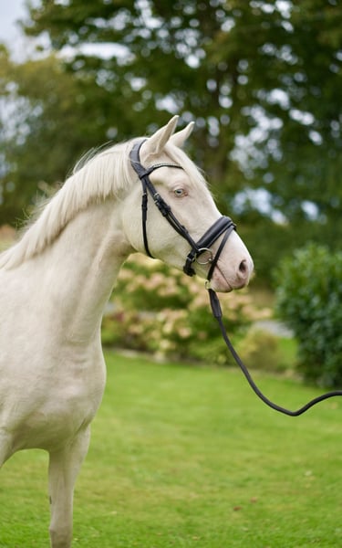 For sale is this beautiful XL riding pony mare. "Geisterpuppe" was born in 2022 and has since been lovingly raised on a family-run horse farm. During the summer months, she was turned out on pasture 24/7, and in the autumn and winter, she stays in the stable with daily turnout in the paddock. She has always been handled on the lead and has been regularly worked with since this summer (groundwork, grooming, leading in the riding hall as well as on the outdoor arena). The mare is very friendly, open, and easy to handle in everyday interactions. She is familiar with agricultural machinery, dogs, children, the riding hall, and outdoor arena. We have carefully prepared "Geisterpuppe" for starting under saddle, taking our time. Currently, I am riding her on the longe line. She consistently remains relaxed, attentive, and willing to work. Thanks to her excellent pedigree, this mare is also ideally suited for breeding. Due to personal reasons, we unfortunately have to part with this wonderful mare. We are looking for a 5-star home where she can enjoy a versatile training program. "Geisterpuppe" would also be an ideal match for a mother-daughter partnership. X-ray images from October 2025 are available. By arrangement, it is possible to include suitable accessories for "Geisterpuppe" (rain and winter sheets, fly sheet, leg protection, saddle, bridle including bit). For inquiries or to schedule a viewing, please feel free to contact us by phone or WhatsApp at: 0173 8841071 or 0175 6601860.