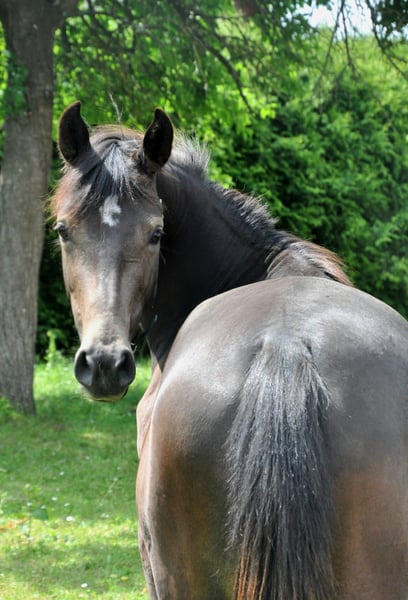 For sale is a promising 4-year-old riding pony mare with excellent potential for sport and breeding. The young lady is appropriately trained for her age and consistently demonstrates diligence, eagerness to learn, and motivation in her work. She is very light-footed and sensitive, with three good, expressive basic gaits, showcasing the quality needed for a future in competitive riding. Due to her age, she is not suitable for beginners at the moment, but with further training, she will develop into a fantastic partner. From a breeding perspective, she is highly interesting: her pedigree includes proven lines such as Dimension, Can Dance, and Nemax. There is also very good show jumping blood in her lineage (Douglas). Her dam line is particularly noteworthy, consistently producing very well-behaved, child-friendly ponies that have reliably carried their young riders through all disciplines of competitive sport. A charming young mare with quality that can impress both in sport and in breeding. If interested, we look forward to hearing from you.