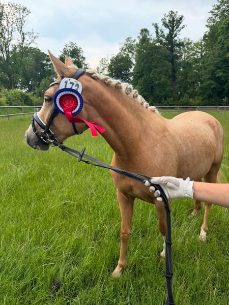 For sale! I am selling my self-bred 3-year-old mare Zaramilla S by the stallion Cristall (successes and placements in M dressage and jumping as well as ** eventing) out of Zelya (A New Star x Top Zento). She received her association premium yesterday, with a trot score of 9.0. She was just one point short of the state premium eligibility. Theoretically, she could be presented again next year. She achieved a great 3rd place in the free jumping championship. She completed her mare performance test with a score of 8.35. She is well-behaved in handling and has been familiar with children/tractors/dogs since her first day with us. With further training, she will make a great children's pony. My 10-year-old daughter has already ridden her. She is being sold because my daughter wants to keep her mother, and we simply cannot ride everything. If interested, please send a private message. Price: €10,000-15,000 negotiable.
