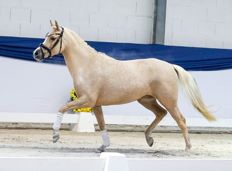 Our collection features carefully selected young horses suitable for all disciplines: training, breeding, and children's ponies. You can view the entire collection here: https://ponyforum.auction Another promising young pony ready for a fresh start! Domfee is an exceptionally typey and charming three-year-old with an adorable pony look. With her big, expressive eyes, she happily greets everyone who stops by her stable! She is friendly and enjoys being fussed over. Domfee has also been backed by us and can begin further training immediately. She is free to be ridden in all basic gaits in the indoor arena and is completely unbothered by distractions. She responds reliably to rider’s aids and moves effortlessly and gracefully under the saddle. She is easy to handle in all situations, a pleasantly cautious and sensitive mare. With her perfect pony size and excellent rideability and conformation, we see her as a pony that could compete at the Bundeschampionate in Warendorf in 2027 with a young rider in the saddle! Directly from the breeder.