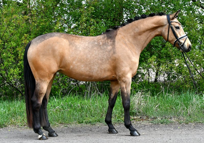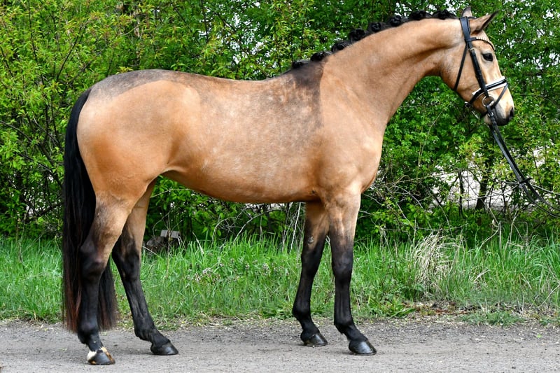 Hermosa y elegante yegua de raza Falbe, futura pony para niños con mucho potencial.