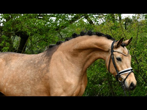 "Glory" arrive directement de l’élevage avec une inspection récente – une jument très douce avec une belle apparence. Bien qu’elle soit encore au début de sa formation, elle se distingue déjà par son tempérament facile. Ses bonnes allures de base laissent envisager un avenir prometteur en dressage – avec une formation supplémentaire, elle sera sûrement adaptée plus tard en tant que poney pour enfants. Un certificat vétérinaire très satisfaisant, incluant le dos et le cou (sans anomalies), est bien entendu disponible. Venez la voir et tomber sous son charme !