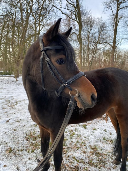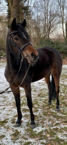 Enjoy ist eine 1,47 m große, typvolle 4-jährige deutsche Reitponystute mit guten Grundgangarten und einem korrekten Körperbau. Sie ist ein sensibel und fein reagierendes Nachwuchspony mit viel Potenzial für die weitere Ausbildung. Enjoy wurde schonend angeritten und zeigt sich unter dem Reiter lernwillig und artig. An der Longe läuft sie sicher in allen drei Grundgangarten und reagiert sehr gut auf Stimmkommandos. Auch Stangenarbeit in Schritt, Trab, Galopp sowie Freispringen kennt sie bereits und hat große Freude daran. Im täglichen Umgang ist Enjoy freundlich und menschenbezogen. Putzen, Satteln, Hufe geben mag sie gerne. Auch Anhängerfahren liebt sie und lässt sich super verladen. Spaziergänge im Gelände (ohne ein weiteres Pferd) sind problemlos möglich. Besonders schön ist ihre Orienterung am Menschen. Im täglichen Umgang ist sie sehr lieb und unkompliziert. Beim Freispringen zeigt sie, dass sie die Gene ihres springgezogenen Vaters Don Deluxe geerbt hat. Aufgewachsen ist sie direkt bei uns auf dem Bauernhof und kennt Trecker, Hunde, Katzen, große Maschinen etc. Als Saugfohlen ist sie prämiert worden. Enjoy ist mit anderen Pferden sehr verträglich. Aufgrund ihres Alters und Ausbildungsstandes ist Enjoy (noch) kein Anfängerpony und sucht einen lieben, ruhigen Menschen, der Freude an der weiteren Ausbildung eines jungen Pferdes hat. Enjoy hat im letzten Sommer ein leichtes saisonales Sommerekzem gezeigt, welches aber sehr gut händelbar war. Sie hat keine Decke o.ä. benötigt. Deshalb wird sie weit unter Wert verkauft. Das Video zeigt sie bei ihrem ersten Freispringen ❤️ im Dezember. Die Fotos sind aktuell vor ein paar Tagen entstanden. Bei Interesse freue ich mich über eine Kontaktaufnahme. Probereiten wird aus Schutzgründen für Enjoy mit 30 EUR berechnet (wird bei Kauf natürlich angerechnet). Kontakt bitte per WhatsApp 0170-8323905
