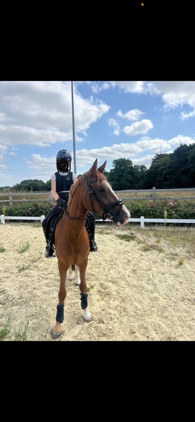 Zum Verkauf steht eine super liebe und ehrliche 4-jährige deutsche Reitponystute. Sie besticht durch ihren ausgeglichenen Charakter und ist absolut unerschrocken. Ob im Gelände oder auf dem Reitplatz macht sie immer ihren Job. Auch mit meiner 9 jährigen Nichte möchte sie nichts falsch machen und dreht absolut verlässlich ihre Runden. Ich bin mir sicher, dass sie viele Kinder- als auch Erwachsenenaugen zum Strahlen bringen wird. Sowohl als Kinderpony als auch zum selber ausbilden bestens geeignet. Wir haben sie selbst gezüchtet und trennen uns lediglich aufgrund von Zeitmangel von ihr. Aktuell 1.48cm m.E. D-Gold AT x FS Don’t Worry *2021 Dressurpferde A ausgebildet Videos mit und ohne Reiter als auch im Gelände oder auf dem Reitplatz mit mir und auch mit 9 jährigem Kind können bei ernsthaftem Interesse verschickt werden. Für weitere Fragen melden Sie sich gerne!