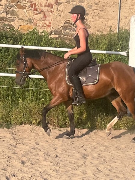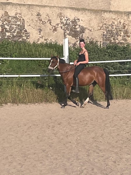 La Leska ist eine 5jährige Ponystute mit vollen Papieren. Sie ist ca. 1.42 m , deckt jedoch gut ab. Die Reiterin auf dem Foto ist 1.72 m. Lala , wie sie liebevoll genannt wird, ist seit Anfang des Jahres unter dem Sattel und somit auch noch völlig unverbraucht. Sie ist vielseitig, professionell ausgebildet, ist sehr fein und einfach an die Reiterhilfen zu reiten, ist super brav im Gelände und macht auch kleine Sprünge. Ein Pony das Spaß macht und immer lieb ist.