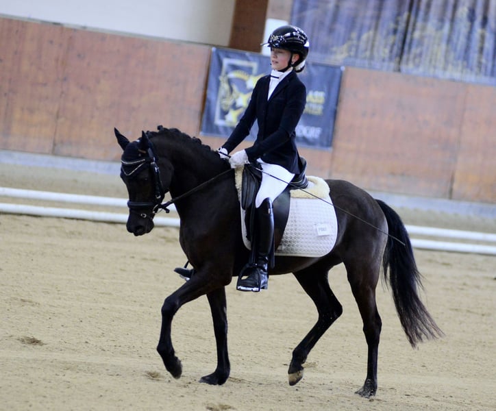 Bildschöne bereits weit geförderte Dressurponystute. Derzeit ist sie 4 jährig und 143cm groß . Sie konnte bereits mehrere Siege auf Dressurturnieren verzeichnen, mit Wertnoten bis 7,8. Sie bringt ebenfalls großes Sprungtalent mit auf den Tisch, hier fehlt es leider noch an Parcoursroutine. Sie ist mit Kindern und jungen Reitern vertraut. Sie geht ebenfalls gerne ausreiten. Sie ist Schmiede und Verladefromm und Herdentauglich. Sie findet sich sowohl in einer Box als auch im Offenstall zurecht. Wer ein wirklich feines Pony sucht ist bei ihr genau richtig. Sie steht derzeit in Wien im Prater und kann gerne jederzeit besichtigt werden.