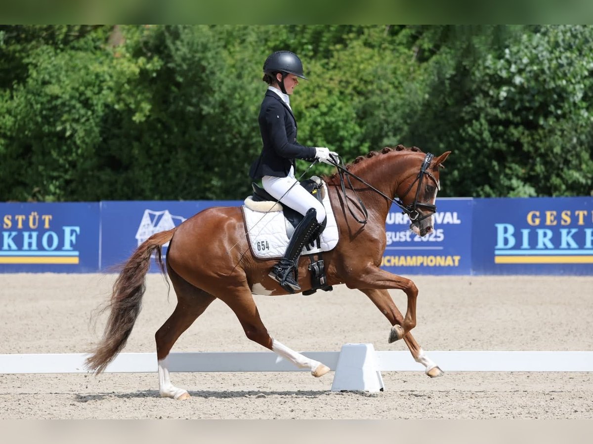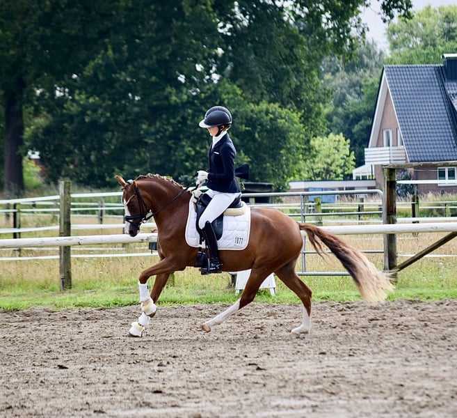 ,,Emma“ hat drei überragende Grundgangarten, die Sie schon mehrfach erfolgreich unter Beweis stellen konnte. Sie hat mehrfach Reitpferdeprüfungen bis 8,6 (gegen Großpferde) gewonnen. War 2025 auf dem Westfalenchampionat im Finale platziert und qualifizierte sich zum Bundeschampionat. Zudem hat Sie ihre Stutenleistungsprüfung mit der Staatsprämie und der Reserve Siegerstute abgeschlossen. Für den Fremdreiter Test gab es eine 9,0! Ein Pony, dem alle Türen offen stehen! Sie kennt spielerisch die Lektionen der Klasse DrpfL und kann sofort in DrpfA eingesetzt werden. Weiter Videos bei ernsthafter Interesse, auf Anfrage!