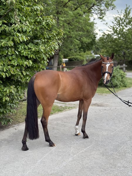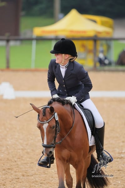 Dancing Queen besticht nicht nur mit ihrem Aussehen sondern auch mit ihrem tollen Charakter. Sie konnte sich bereits auf ihrem zweiten Turnier an dritter Stelle in einer A Dressur platzieren. Sie ist kopfklar und im Umgang unfassbar brav. Diese vielversprechende Stute zeigt sowohl in der Dressur als auch im Springen großes Potenzial. Sie lässt sich schön mit Ausbindern reiten, geht brav ins Gelände, sowie ins Wasser. Sie war bei uns noch nie krank! Sie wird aufgrund ihres Alters noch nicht als Anfänger- oder reines Kinderpony abgegeben und sollte immer von einem stärkeren Reiter mit geritten werden. Dancing Queen sucht nun ein liebevolles neues Zuhause, wo sie weiter gefördert und gefordert werden kann. Natürlich wurde sie regelmäßig entwurmt, geimpft, Zähne gemacht, Physio und Hufschmied vorgestellt. Klinische AKU wurde im April letzten Jahres gemacht so wie Bilder von Rücken und Hals. Gerne können sie auf eigene Kosten eine aktuelle AKU machen lassen. Gegen Aufpreis kann ein angepasster Prestige Lucky Dressage Sattel mit übernommen werden. Bei Interesse oder für weitere Informationen können Sie sich gerne melden. Wir freuen uns auf Ihre Anfrage! Über WhatsApp erreichen sie mich unter 015510330752 Telefonisch oder per SMS unter 01737951567