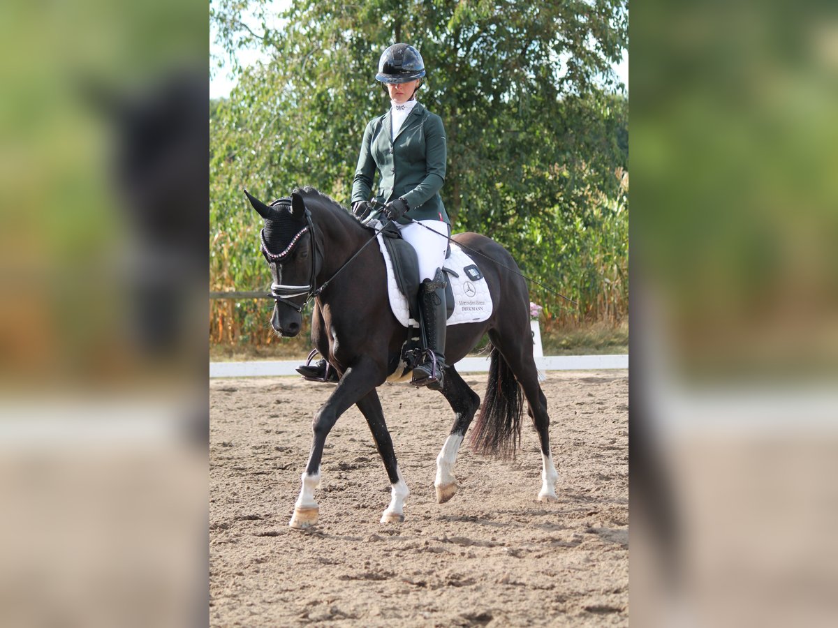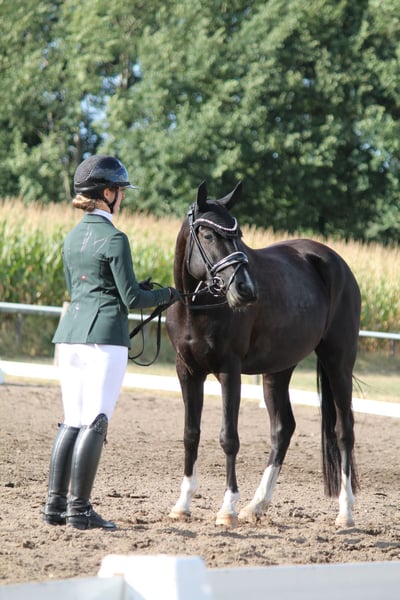 For sale is a very stylish and talented 5-year-old German Riding Pony mare with promising potential in dressage. She has already been presented in young horse classes and is currently confidently trained at the level of dressage horse class A. First lessons at the L-level have already begun. Her outstanding qualities include her excellent basic gaits, especially her remarkable walk, which has already been awarded a score of 8.0. The mare demonstrates: - Very well-behaved and uncomplicated in handling - Pleasant in daily management - Loadable without issues on her own - Safe and sensitive to ride even for younger riders - Motivated, eager to learn, and consistently reliable under saddle She is ideally suited for ambitious young riders and offers excellent conditions for further sporting development.