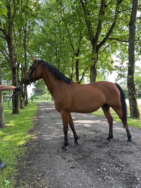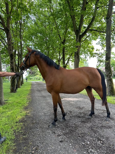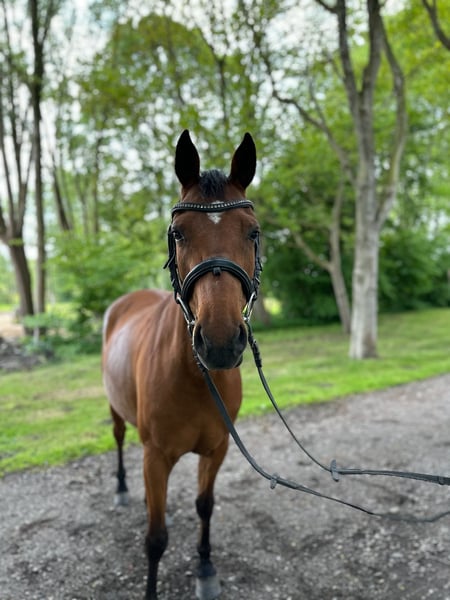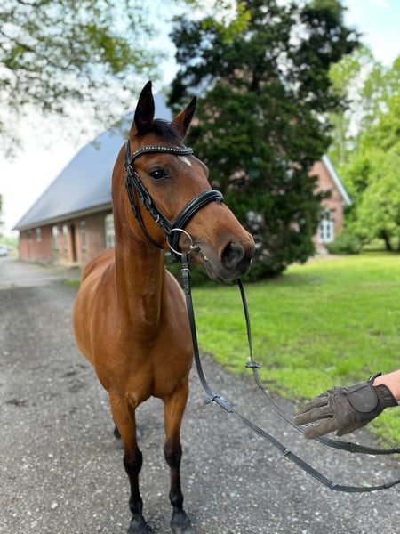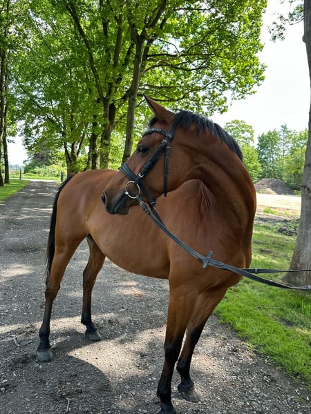 5-year-old Riding Pony Mare by Cosmo Royale – well-behaved, uncomplicated & family-friendly For sale is a 5-year-old German Riding Pony mare with a height of 146 cm. She is sired by Cosmo Royale and was bred in our stable. Since she was a foal, she has had daily contact with children and adults – as a result, she is well-socialized and absolutely reliable in handling. The mare has already been lunged, including with a saddle, and shows herself to be very well-behaved, attentive, and uncomplicated. Due to her balanced temperament and good basic training, we are confident that the backing process will also go smoothly. In handling, she is friendly, calm, and patiently cooperates with everything – a true children's pony, but also very suitable for smaller adults. She is already familiar with trailer loading, farrier visits, and traffic (including cars and tractors) and remains calm throughout. A promising pony with a great character and significant potential – both as a reliable leisure partner and later for sports.