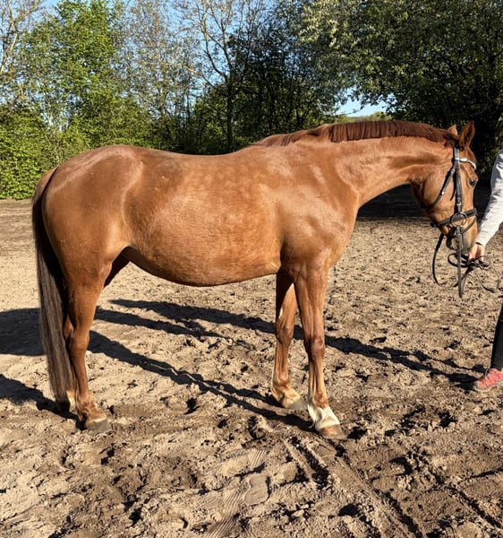 Zum Verkauf steht eine elegante 5-jährige Pony-Stute mit einem Stockmaß von 147 cm. Als Staatsprämienstute überzeugt sie nicht nur durch ihre Qualität, sondern auch durch ihre herausragende Abstammung und ihr großes Potenzial für den Sport. Sie verfügt über sehr gute Grundgangarten und bringt beste Voraussetzungen für eine erfolgreiche weitere Ausbildung mit. Ein ideales Pony für jemanden, der Freude daran hat, sich ein Nachwuchspony selbst auszubilden. Die Stute ist gerade erst angeritten, läuft Schritt, Trab und Galopp an der Longe. Abstammung: Mutterlinie: FS Champion de Luxe Vater: Cosmo Royale Im Umgang zeigt sie sich sehr verschmust, freundlich und unkompliziert. Ein vielversprechendes Nachwuchspony mit Qualität und Perspektive. Bei Interesse oder für weitere Informationen gerne melden.