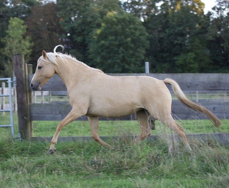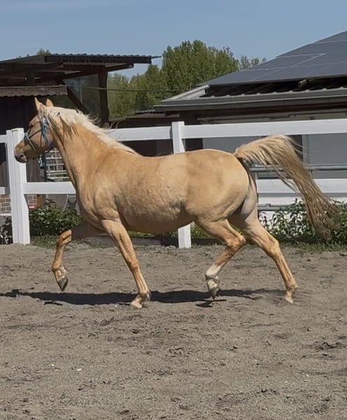 Beautiful, sweet, and energetic daughter of FS MR RIGHT. MR Highlight, as the name suggests, is a real eye-catcher. With her wonderful special color, she immediately catches everyone's attention. Due to a reduction in our stock, we unfortunately have to part with this amazing mare. She is familiar with trailer loading, grooming, leading, and lunging. She is regularly vaccinated, dewormed, and microchipped. She is used to the farrier who comes every 6 weeks and is very well-behaved during the process. We wish for her a great home that will continue to support her, as she has quality. She has three super nice gaits. If you have any further questions, we are happy to help or if you are interested in videos, please call 01602294861.