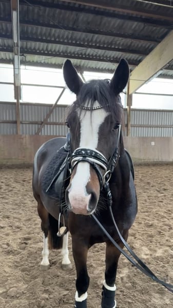 „Trust me Darling“ besticht durch ihre Leistungsbereitschaft und ruhigen/ausgeglichenen Charakter - 3 gute Grundgangarten, sowie die besondere Farbgebung machen sie zu einem echten Hingucker. Das stellte sie auch bei ihrem ersten Turnier direkt unter Beweis: Vize-Championess der 4 jähr. Stuten und Wallache in HH/SH 2025. Dort zeigte sie sich ebenfalls mit Übersicht und stets vorbildlich. Auch züchterisch hochinteressant als Verbandsprämienstute aus einer absoluten Leistungsfamilie: Mutter und Vater waren selbst hocherfolgreich im Sport bis FEI/S** und beide Teilnehmer bei den DJM! Nun ist sie bereit als Nachwuchspony in den FEI Sport zu wachsen. Wir suchen ein wertschätzendes, förderndes Zuhause für dieses tolle Pony.
