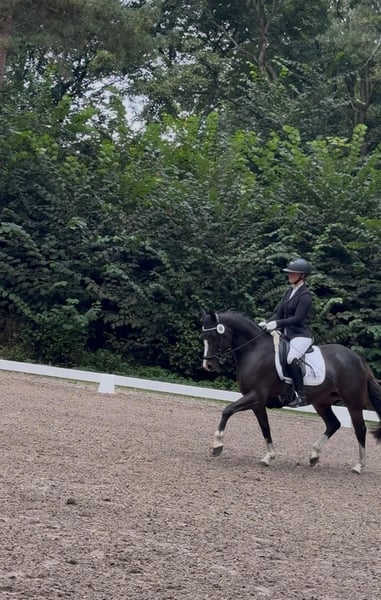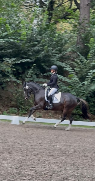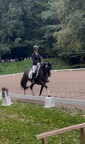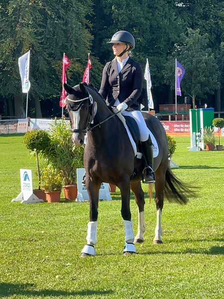 "Trust me Darling" si distingue per la sua disponibilità alle prestazioni e il carattere calmo/equilibrato: tre ottimi passaggi fondamentali e un colore particolare la rendono davvero un'attrazione. Lo ha dimostrato anche al suo primo torneo: vice-campionessa delle puledre e dei stalloni di 4 anni a Amburgo/Slesia 2025. Lì si è mostrata con sicurezza e sempre in modo esemplare. Interessante anche dal punto di vista riproduttivo, in quanto puledra premiata dalla federazione, proveniente da una famiglia di altissimo livello: madre e padre sono stati atleti di successo fino a FEI/S** e entrambi hanno partecipato alle DJM! Ora è pronta a crescere come pony di talento nel mondo FEI. Cerchiamo una famiglia che sappia valorizzare e sostenere questa splendida pony.