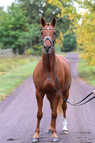 " Glitzer Gold" - nicht nur der Name dieser tollen Stute ist bezaubernd! Die 5 jährige Tochter des S platzierten Ponyhengstes " Glück auf A" kommt direkt vom Züchter und wurde toll aufgezogen und schonend auf Dressurpferde A Niveau ausgebildet. Reiten in Halle, Platz und Gelände - kein Problem für Glitzer! Sie überzeugt mit 3 gleichmäßig sehr guten Grundgangarten und schon guter Versammlungsbereitschaft- das ist eine zum Ausbilden auch für die spätere FEI Tour ! Super brav im Umgang als auch unter dem Sattel. Glitzer wird zeitnah auch noch mal Turnier vorgestellt! Sehr rittig, tolle Anlehnung und bereits recht abgeklärt in fremder Umgebung. Ein sehr guter TÜV inkl. Rücken liegt vor. Unkompliziert auch mit anderen Pferden, nicht stutig! Ansehen und verlieben !