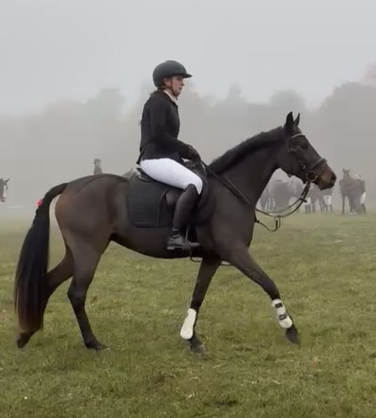 Brillant is a solidly trained, sensitive mare with great potential for both sport and leisure riding. She is confident off-road, eager to work, and enjoys dressage and jumping. She also demonstrates a clear head and a calm demeanor during fox hunting, combined with the necessary drive. Thanks to her movement and her calm, balanced temperament, she would also be very well suited as a hunter pony. She responds sensitively to aids and therefore requires a calm, balanced rider who can provide her with confidence. In daily handling, she is very well-behaved, straightforward, and affectionate. A versatile, easy-to-ride pony with a pleasant character – ideal for ambitious riders seeking a young horse with a solid foundation and development potential. Please feel free to contact us with any questions or if you are interested!