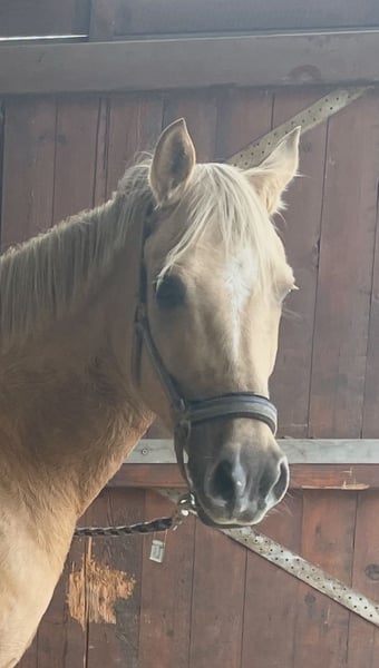 We are offering our beautiful, sweet pony mare for sale with a heavy heart. She is exceptionally gentle and affectionate in handling, very human-oriented, and loves cuddles. She has an excellent pedigree and, accordingly, possesses very good basic gaits. Under saddle, she is very motivated, displays a great work attitude, and moves forward with enthusiasm. She is very easy to sit and simply a pleasure in every aspect and area. She is kept with us in a small mixed herd and tends to be lower in the pecking order. She has never been ill a single day during her time with us. She measures approximately 1.48 meters (about 15.2 hh). She loads calmly onto the trailer, stands nicely for the farrier, and is neither spooky nor tense for her age. Buckling, rearing, or other bad habits are unfamiliar to her – she always wants to do everything right and please her handler. Of course, with further training, she has the potential to become an FEI pony for the big arena – but does every good pony have to become an FEI pony? We wish for our little mare to find a 5-star home where she is regarded as a family member, not just a sport horse, and where she receives the love, cuddles, and attention she deserves. We are not in a hurry to part with her. Due to her friendly, fearless nature and her good breeding, we can very well imagine her as a children's pony or, ideally, as a mother-daughter pony with further training. If you are genuinely interested, please feel free to contact us via WhatsApp at: 016097233628.