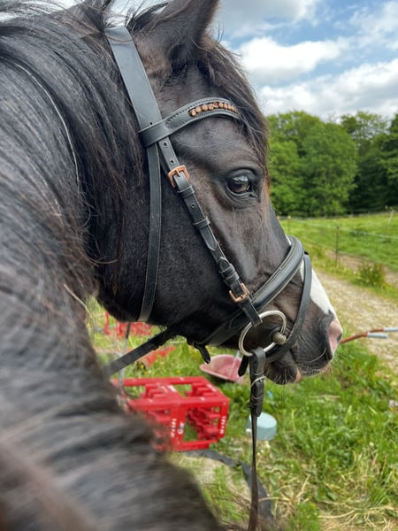 For sale, directly from the breeder, is this typy 5-year-old pony mare. Bred from KentNaganoWE, out of a Massai dam. Strikingly pretty jet black, "KönigshofsKleineNachtmusik" additionally impresses with her priceless character. She is unconditionally friendly towards everyone - a promise of happiness every day! The mare has been gently backed and consistently trained for her suitability as a children's pony. She forgives noticeable clumsiness from the rider and is always eager to do things right. Kiki is often ridden by younger horse friends and always shows a kind disposition. She allows her little pilots to catch her, groom her, and prepare her for riding. She does well in adjusting to the needs of her rider, being careful and considerate. The charming mare has already experienced her first taste of competition and has safely carried her little rider through the events. The pony enjoys a versatile basic training - she goes out in a group calmly, works in various riding arenas, and is always eager to listen to her rider. There are no issues with loading, the farrier, or the veterinarian. An honestly charming pony that is uncomplicated in handling and care. She is familiar with both individual box systems and robust group housing in open stables. Even after a few days off, you won't need a gun license for this riding pony mare. Intelligent, yet with hardly any arrogance, she approaches new situations with openness. Throughout her life, she has shown no signs of resistance - she serves in the facility as a teaching horse in double lunge lessons and groundwork. This pony is particularly recommended for family combinations: mother-daughter constellations with a lot of joy in versatile and safe equestrian sports. Registered as a competition pony and fully vaccinated, nothing stands in the way of the current season. I wish for this beautiful mare a species-appropriate housing and a focus on an honest partnership. This pony is remarkably reliable and eager - for this, continued species-appropriate housing and varied training are required. Despite her balanced temperament, she remains a pony sport partner - this is a living being. This pony is not available for lease. She is gladly sold including her dressage saddle and all other accessories - even without a saddle, the price does not change - there is only a minimal room for negotiation - even if she does not have golden hairs in her tail. An X-ray certificate has been created (without findings); should a new one be required, the buyer will bear the costs - a clinical examination will be arranged and paid for by me as part of the contract - a confidentiality waiver for the existing veterinarian will be issued. We charge €50 for a trial ride. Of course, grandparents/aunts/uncles can be brought along to this appointment, but not everyone will be able to sit on her! In my facility, no rider is allowed to ride out alone; this is also not a criterion that our ponies must fulfill - however, the mare confidently goes with children alone to remote and unknown riding areas, and in the terrain, she goes bravely ahead or follows behind. Within Germany, I am very happy to transport this pony to her new home. To the best of my knowledge and belief, this mare has been raised and trained very thoughtfully - she is a healthy, well-socialized riding pony, ready for immediate use as a versatile sport and leisure partner in the common classical riding styles. Genuine interest is best expressed by phone to discuss all arising questions in detail from both sides.