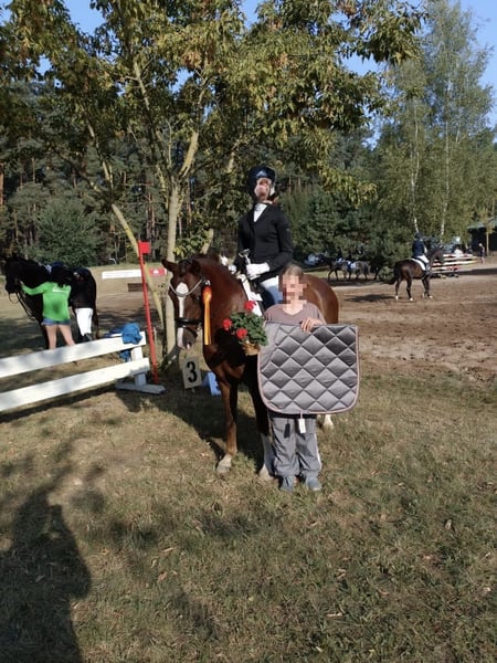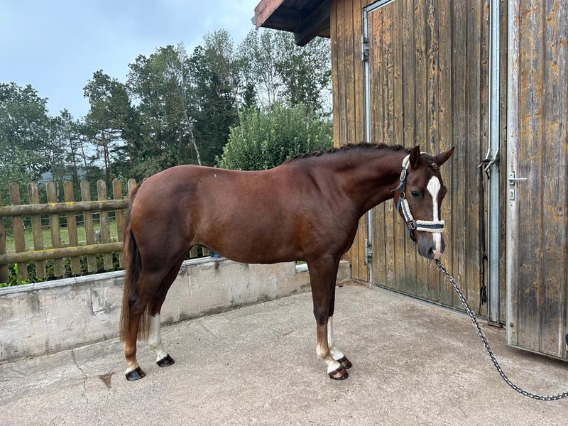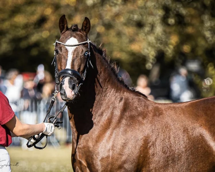 Zum Verkauf steht eine 6 jährige Dt. Reitpony Stute Stockmaß 1,44 m in einem wunderschönen Dunkel Fuchs Ton. Sie ist bereits Staatsprämienstute. Sie besticht mit einem absoluten traumhaften Charakter und ihrem liebevollen Wesen. Sie kann auch schon kleine sportliche Erfolge im WBO Bereich nachweisen. Sie ist super lieb, sehr Menschen bezogen und zeigt sich im täglichen Umgang unkompliziert und klar im Kopf. Egal ob putzen, Schmieden oder verladen, sie macht alles brav mit und ist ein wahre Freude im täglichen Umgang. Unter dem Sattel ist sie rittig, mit viel go ausgestattet, leistungsbereit und stets konzentriert. Am Sprung zeigt sie eine tolle Einstellung mit viel Übersicht und genügend Vermögen für höhere Aufgaben. Eine wunderbare Nachwuchsstute für ambitionierte Reiter, die ein verlässlich motiviertes und sportlich talentiertes Pferd zur weiteren Ausbildung suchen. Sie hat eine sehr gute Leistungsprüfung abgelegt. Sie ist eine doppelveranlagte Stute auch von Kindern geritten. Im Gelände ein Traum. Bei Interesse oder weiteren Fragen beantworten wir gerne weitere Fragen.