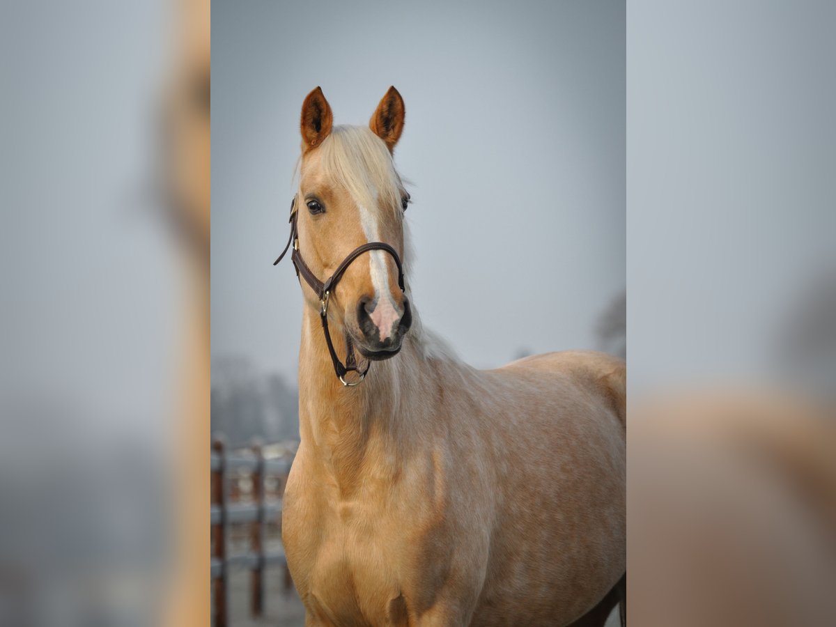 For sale is an exceptionally charming and sportily endowed 5-year-old Palomino mare with a strikingly harmonious conformation. She comes from the high-performance bloodlines of Diamond Touch NRW x Dressman, which is reflected in her excellent rideability and expressive movement. Training level: • Dressage: Confident at L-level, with very good rhythm, a natural tendency to uphill movement, and three consistently elastic, expressive basic gaits. • Jumping: Solid at A-level, brave, with good technique and a good overview at the jump. In daily handling, the mare always appears friendly, attentive, and easy to manage. Under saddle, she works motivated, focused, and reliable. She remains relaxed and fearless in the outdoor riding environment as well. Thanks to her sporting potential, elegant appearance, and balanced character, she is especially suitable for ambitious young riders and smaller adult riders seeking a high-quality, versatile sport pony.