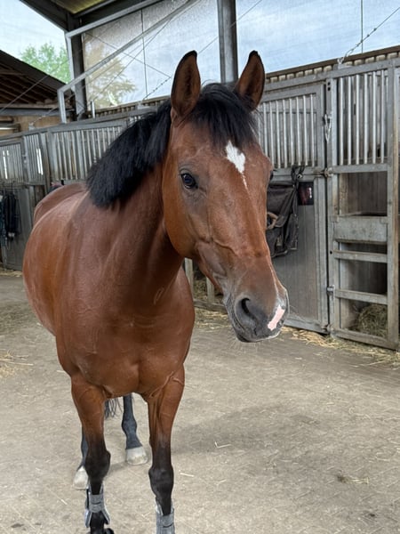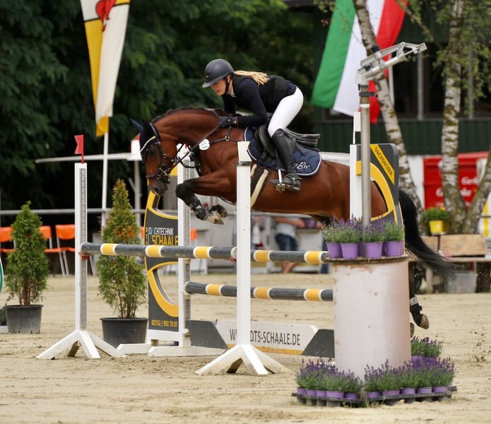 In vendita c'è la cavalla di 6 anni Coer Noblesse (Coer Noble x Las Vegas) con un'altezza di 1,46 m. Connie si distingue per le sue ottime andature di base, una buona montabilità e un eccellente stile di salto. È un pony molto sportivo, particolarmente agile e affidabile nel salto. Connie è un pony eccezionale che ha già ottenuto grandi successi in giovane età. È stata la pony vincitrice della qualificazione finale per pony da completo di 5/6 anni al Bundeschampionat 2025, con un punteggio finale di 8,7. Inoltre, ha vinto competizioni di salto per pony A contro cavalli di grande taglia ed è stata già presentata con successo in salto per pony L. Nel fine settimana scorso ha vinto ancora il salto per pony A con un punteggio di 8,4. Purtroppo, nella finale del Bundeschampionat non ha ottenuto una posizione a causa di una disqualifica, poiché non ha attraversato la linea di partenza nel percorso di campagna. Nella vita quotidiana, è un vero pony dal cuore d'oro. È docile, affettuosa e senza complicazioni. Connie è abituata a essere montata da bambini e rimane sempre gentile e sincera. Non ha alcun vizio come scalciare o sollevarsi ed è molto affettuosa con i bambini. Si trova nella fascia di prezzo medio e ha buone radiografie dell'anno scorso. Per ulteriori informazioni o domande, non esitate a contattarci telefonicamente al numero 015732463127.