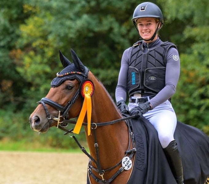 Na sprzedaż 6-letnia klacz Coer Noblesse (Coer Noble x Las Vegas) o wzroście 1,46 m. Connie zachwyca bardzo dobrymi podstawowymi chodami, dobrą jezdnością i doskonałym sposobem skakania. Jest bardzo sportowym kucem, który jest bardzo zwrotny i niezawodny, szczególnie przy skokach. Connie to wyjątkowy kuc, który już w młodym wieku odniósł wielkie sukcesy. Została zwycięskim kucem w finale kwalifikacji dla 5-/6-letnich kuców wszechstronnych na Bundeschampionat 2025 z końcową oceną 8,7. Ponadto wygrała skoki dla koni A przeciwko dużym koniom i została już pewnie przedstawiona w skokach dla koni L. W miniony weekend wygrała skoki dla koni A z oceną 8,4. Niestety w finale na Bundeschampionat nie udało się zająć miejsca, ponieważ linia startu w terenie nie została przejechana, co skutkowało jej dyskwalifikacją. W codziennym obcowaniu jest prawdziwym kucem serca. Jest grzeczna, przytulna i łatwa w obsłudze. Connie zna jazdę na sobie przez dzieci i zawsze pozostaje grzeczna i uczciwa. Nie ma żadnych złych nawyków, takich jak brykanie czy stawanie na tylnych nogach, i jest bardzo przyjazna dla dzieci. Znajduje się w średnim przedziale cenowym i ma dobre zdjęcia rentgenowskie z ubiegłego roku. W przypadku zainteresowania i dodatkowych pytań czekamy na kontakt telefoniczny pod numerem 015732463127.