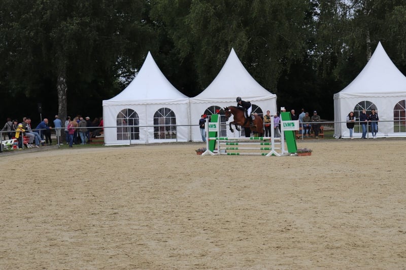 Sprzedajemy naszą 7-letnią klacz niemieckiego kucyka "Vera", ponieważ nasza córka zbyt szybko urosła. Vera jest spokojna w obcowaniu i miała już okazję uczestniczyć w zawodach. Tam wielokrotnie zajmowała miejsca w skokach E. Skakanie sprawia jej wiele radości, a dzięki swoim bardzo dobrym GGA nadaje się również do ujeżdżenia. W terenie zachowuje się wzorowo. Ponieważ Vera została wsiadana późno, chce i powinna jeszcze wiele się nauczyć. Dlatego nie nadaje się jako jedyne kucyka dla dzieci i dla początkujących.