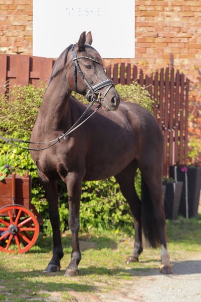 Te koop: getalenteerde Duitse Reitpony-merrie, geboren in 2019, in een mooie zwartbruine kleur. Met een stokmaat van 1,45 m is ze de ideale partner voor de dressuursport. De goed gereden en fijn afgestemde merrie overtuigt door haar elegante uitstraling en haar aangename temperament. Ze toont al veelbelovende talenten in de dressuur en is zowel geschikt voor ambitieuze recreatieruiters als voor wedstrijdruiters. Een betrouwbare partner die met haar open karakter en potentieel enthousiasmeert. Voor meer informatie ben ik graag bereikbaar.