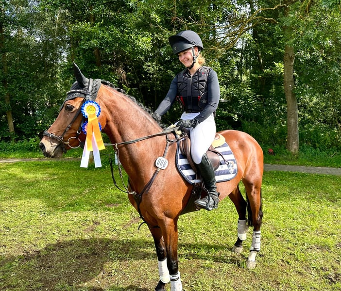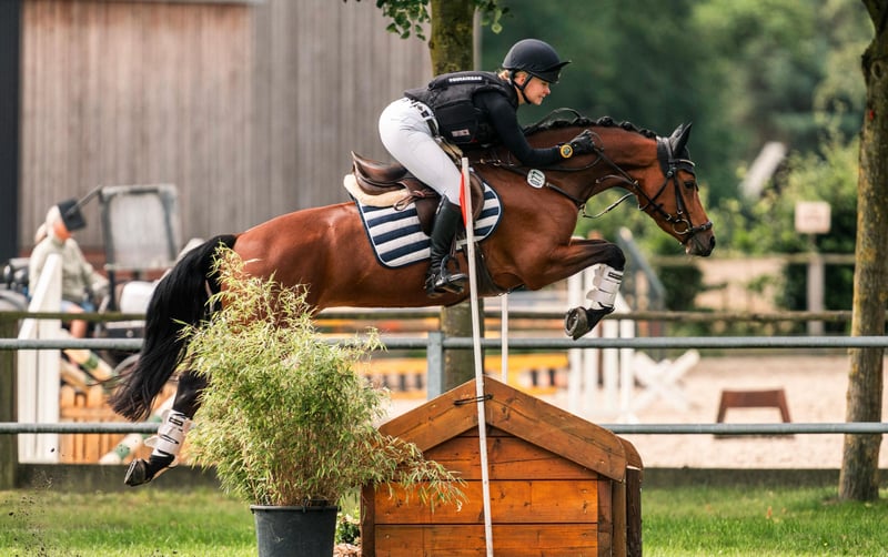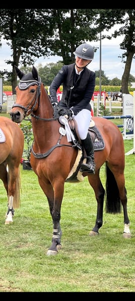 "Il capolavoro di Hündersens" è un pony tedesco di 6 anni, da Genscher x Diamantenglanz AT. A 4 anni ha avuto un puledro, motivo per cui è entrata nel mondo dello sport solo in età avanzata. Nella sua prima stagione in gara ha già vinto più volte in cross country E con punteggi fino a 9,0 e si è classificata in prove di cross country della classe A** con punteggi di 8.0. Ha inoltre ottenuto buoni risultati anche in prove di salto ostacoli e in competizioni di salto della classe A. Si è qualificata per il Bundeschampionat di quest'anno per pony di 5 e 6 anni di versatile. "Glanzi" è un pony molto volenteroso, sempre desideroso di andare "dall'altra parte". Questo diamante grezzo, ideale per il salto o il completo di alto livello, cerca mani esperte, poiché è ancora all'inizio della sua formazione. Viene ceduto esclusivamente a giovani con ambizioni sportive, con buona assistenza, o a piccoli adulti. Prezzo in base alla qualità, su richiesta telefonica.