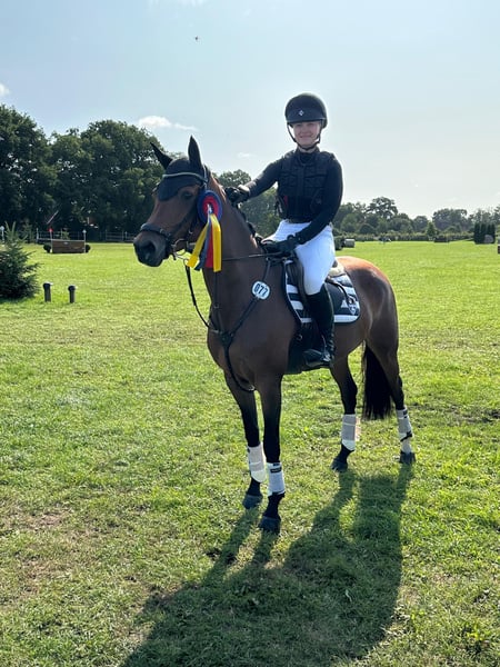 "Hündersens Glanzstück" is a 6-year-old German Riding Pony by Genscher out of Diamantenglanz AT. She had a foal at the age of 4, which is why she only entered the sport quite late. In her first competition season, she already won several cross-country classes at E-level with scores up to 9.0 and placed in cross-country tests of class A** with 8s. She also achieved placements in show jumping classes of class A. She qualified for this year's Bundeschampionat for 5- and 6-year-old eventing ponies. "Glanzi" is an eager pony that always wants to go "to the other side." This raw diamond for advanced show jumping or eventing is looking for guiding hands, as she is still at the beginning of her training. She will only be sold to ambitious young riders with good support or small adult riders. Price according to quality, available upon telephone inquiry.
