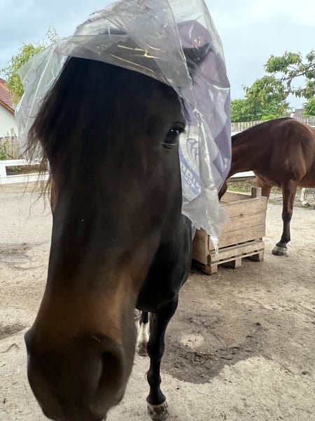 Ari ist eine liebe, unheimlich intelligente und aufgeweckte Stute. Einzig aufgrund von Zeitmangel wird für sie ein neues Zuhause gesucht, in der sie ihr Potential entfalten kann, gefördert und gefordert wird. Besitzt einen einmaligen und liebenswerten Charakter. Deshalb bitte keine Anfragen von Händler oder Reitschulen! Maschinen, Hunde , Hof Alltag..all das kennt Ari und möchte gern über all mit dabei sein. Alles was neu ist, muss untersucht und erforscht werden. In der Herde ist sie im mittleren Rang. Aktuell lebt sie in einem Offenstall und das soll in Zukunft auch so bleiben, da sie einen gesunden Bewegungsdrang hat. Sie wird als roh verkauft, da für sie leider die benötigte Zeit fehlte. Folgendes hat sie in der vergangen gemacht: - Gelände ( Handpferd/ spazieren/ Wasser) - sieben Spiele -Longe -kennt Sattel/Reiter Gewicht -Sandplatz mit Palette abziehen -vom Boden aus gefahren werden. -Equikinetic -Bodenarbeit Beißen oder schlagen sind Ari absolut fremd. Trägerin des PSSM 1 Gens, welches sich bisher nur einmal gezeigt hat ( vor vier ca vier Jahren) seither unauffällig. Ab dem Frühjahr möchte sie eingedeckt werden, kein Schweif oder Mähne weg/ blutig scheuern aber empfindlich gegenüber Mücken. Zähne im April frisch gemacht.