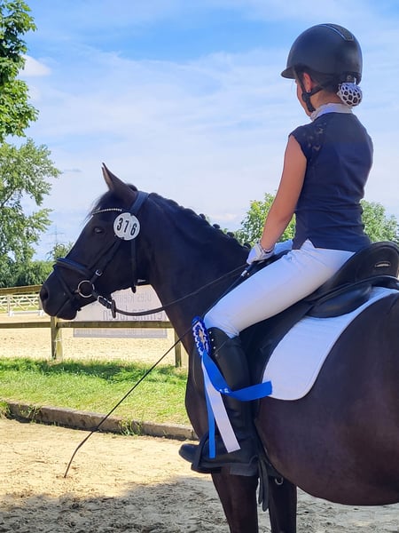 M-siegreiche Rappstute mit Championats-Genetik: Fahrprofi & Kinder-Lehrmeisterin Schweren Herzens suchen wir für unsere 8-jährige Deutsche Reitponystute (Rappe, 142 cm) ein neues Zuhause. Sie vereint eine erstklassige Abstammung mit absoluter Nervenstärke und sportlicher Vielseitigkeit. Diese schicke Rappstute besticht durch ihre exquisite Genetik: Sie stammt ab von Brilliant G aus einer Mutter von Dimension AT. Dass sie diese Leistungsbereitschaft auch vererbt, hat sie 2023 als liebevolle und fürsorgliche Hengstmutter bereits unter Beweis gestellt. Sportliche Erfolge & Ausbildung: Fahrsport: Ihr Haupteinsatzgebiet, in dem sie voll überzeugt. Sie ist in allen Disziplinen (Dressur, Hindernis, Gelände) siegreich in Klasse M. Sie steht voll im Training und ist sofort bereit für die kommende Fahrsaison. Reitsport (Turnier): Eine verlässliche Partnerin für die Kleinsten. Sie ist erfolgreich in WBO-Prüfungen gestartet- ein Schleifenwunder– von der Führzügelklasse über Caprilli bis hin zu E-Dressur und E-Springen. Ausbildungsstand (zuhause): Reiterlich ist sie auf A-Niveau , erste L-Lektionen wurden spielerisch begonnen. Sie ist eine echte „Lebensversicherung“. Unerschrocken, gelassen und absolut kinderlieb. Sie besitzt einen gesunden Kampfgeist im Sport, bleibt aber im Umgang und unter dem Sattel stets ruhig und kontrolliert. Selbstverständlich ist sie regelmäßig geimpft, entwurmt und zahnärztlich kontrolliert. Aufgrund gesundheitlicher Einschränkungen des Besitzers müssen wir uns leider von ihr trennen. Da uns ihr Wohlergehen am Herzen liegt, wird sie inklusive ihres passenden Sattels und der Trense abgegeben. Preis: 20.000 € VHB (inkl. Zubehör) Ein Kennenlernen ist nach Vereinbarung möglich, Probereiten/Fahren mit entsprechenden Kenntnisse. Dafür berechnen wir 30 Euro, die sich beim Kaufpreis wieder verrechnen. Dies ist zum Schutz des Ponys