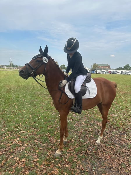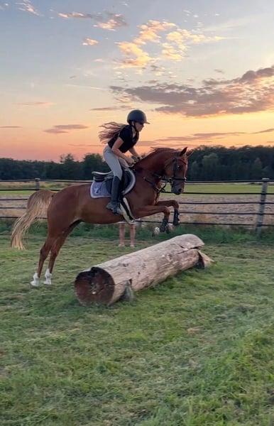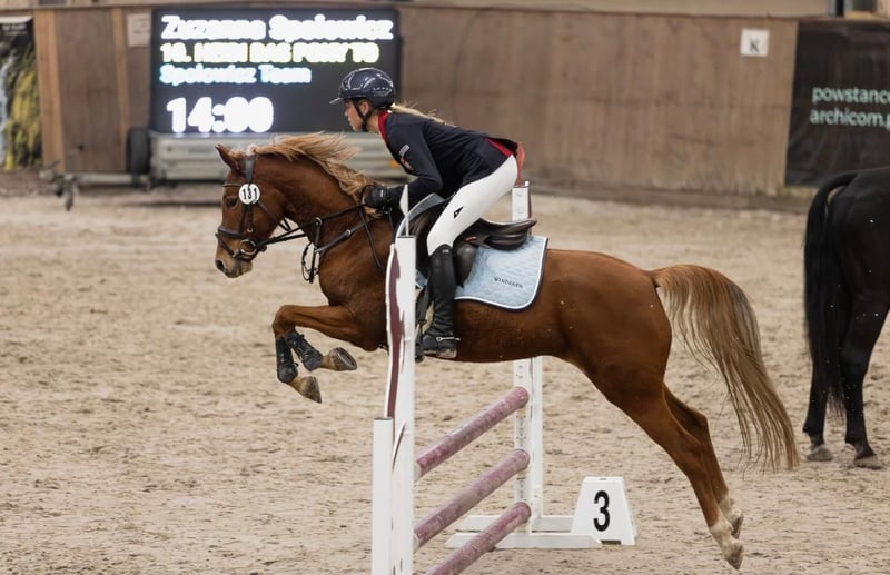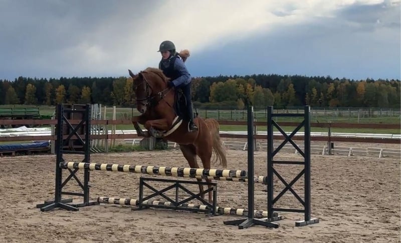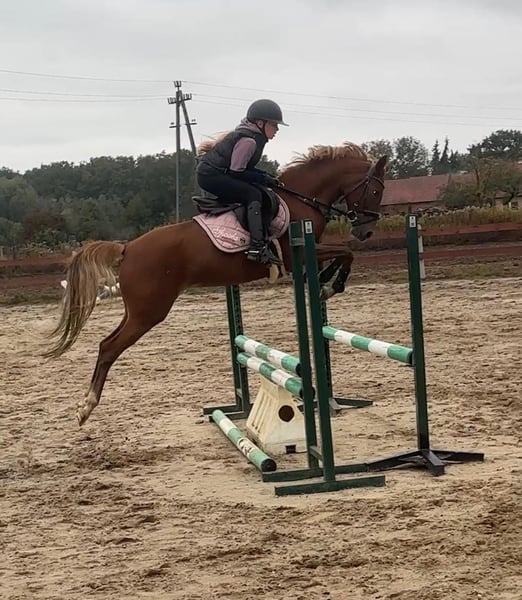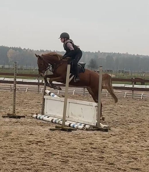 For sale: a beautiful pony mare ready to win. She is 7 years old, 14.1 hh, and competes up to 90 cm, but she has the potential for much more thanks to her impressive jumping ability. She requires a rider with more experience. She has participated in eventing competitions and performed very well. She is free of vices and spooks. Friendly towards other horses. She has a very gentle temperament; easy to handle in daily routines. She stands well for the farrier and grooming, and is not afraid of water. Healthy! We have recent health examinations from this year. Pedigree: sire – Herzkönig NRW; dam – Versace R. The price includes appropriate tack! The pony mare is located in Poland, in the Opole Voivodeship, and is in regular training. For more information and videos, please contact me by phone or WhatsApp: Phone: +48 660 264 421