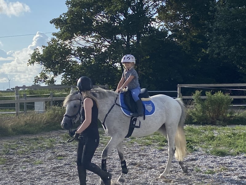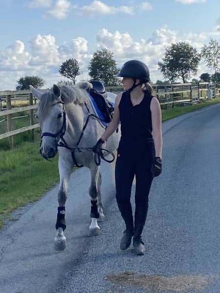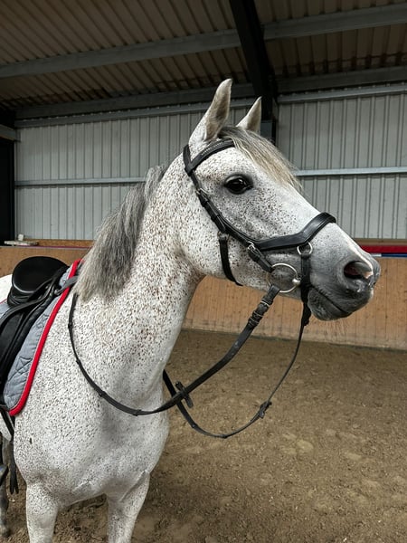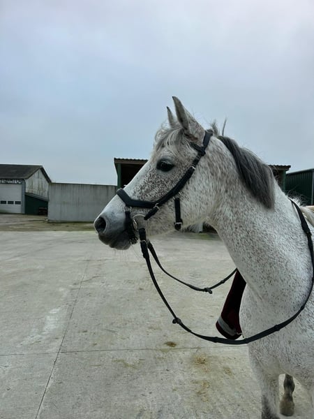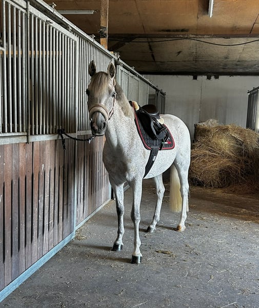 Wonderful pony as a "all-in-one package" including a new, custom-fitted saddle and complete accessories! Thanks to her excellent pedigree, she is suitable for both breeding and as a sport or family pony. She is beautiful, and with patience and encouragement, she will soon become a versatile all-rounder pony. Due to lack of time, this lovely mare was only backed last year at age 7. She is currently still in basic training and is not yet suitable for beginners, as she has a lot of go (but can develop into one). She is very versatile, with a lot of talent and caution over jumps. She is already jumping small courses (70–80 cm) and can be gradually increased in height (later, height should not be an issue). We started slowly to give her confidence, as she had no previous experience. She would also make a great trail pony, thanks to her lovely, big canter and relaxed nature in the field. She is well-behaved in handling and very nice and easy to ride in dressage. If you are looking for a pony to further develop yourself, here is a wonderful partner with lots of quality. ** Barefoot Recently vaccinated and dewormed Battery and X-ray scans from 2025, all clear Currently measured at 14.6 hh Also suitable for breeding TECH ONE spring saddle, new and specially fitted Micklem bridle EQULINE saddle pad Front girth HORSEWARE stable blankets Fly sheet Excellent cooling blanket Front leg protection boots by Equick A pony with a great future, ready to ride immediately – truly ideal for a mother/child team. If interested, please call us or send a message via WhatsApp: +49 172 9809454 Videos are available and can be sent upon request. Trial riding possible for a fee of €30, which will be deducted from the purchase price.