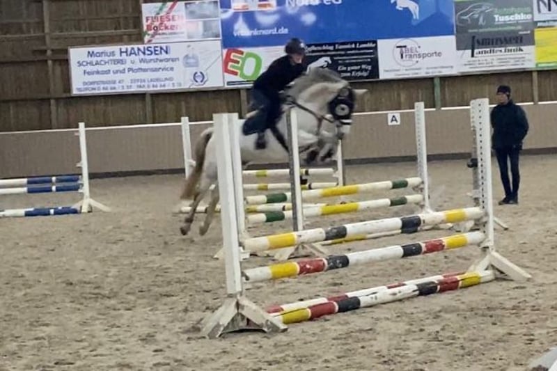 Tolles Pony als "Rundum-sorglos-Paket" inkl. neuem, angepasstem Sattel und komplettem Zubehör! Durch ihre sehr gute Abstammung eignet sie sich sowohl für die Zucht, als auch als Sport- oder Familienpony. Sie ist wunderschön und mit etwas Geduld und Förderung wird sie ganz bald ein tolles allrounder Pony. Aufgrund Zeitmangels wurde die hübsche Stute erst im letzten Jahr mit 7 angeritten. Dementsprechend befindet sich aktuell noch in der Grundausbildung, ist noch kein Anfängerpony, da sehr viel Go hat (kann sie aber noch werden). Sie ist sehr vielseitig einsetzbar, mit viel Vermögen und Vorsicht am Sprung. Läuft schon einen kleinen Parcours (70–80 cm), kann schonend gesteigert werden (die Höhe sollte später kein Problem sein). Wir haben erstmal langsam angefangen, um ihr viel Sicherheit zu geben, da sie vorher noch gar nichts kannte. Sie wäre auch bestimmt ein tolles Buschpony, da sie eine tolle, große Galoppade hat und entspannt im Gelände ist. Sie ist artig im Umgang und auch dressurmäßig sehr schön und einfach zu reiten. Wer ein Pony zum Selberweiterausbilden sucht, findet hier einen tollen Partner mit viel Qualität. ** Barhuf Frisch geimpft und entwurmt AKKU und Röntgen neu von 2025 ohne Befund Aktuell eingemessen mit 146 Auch für die Zucht geeignet TECH ONE Springsattel NEU gekauft und extra angepasst Micklem Trense Schabracke von EQULINE Vorderzeug Stalldecken HORSEWARE Fliegendecke Tolle Abschwitzdecke Gamaschen vorne von Equick Ein Pony mit toller Zukunft zum sofort Losreiten - wäre wirklich ideal für ein Mutter-/Kind-Gespann. Bei Interesse rufen Sie uns bitte an oder schreiben Sie uns per WhatsApp: +49 1729809454 Videos sind vorhanden und können auf Anfrage versendet werden. Probereiten gegen eine Gebühr von 30€ möglich, die natürlich bei Kauf verrechnet werden.