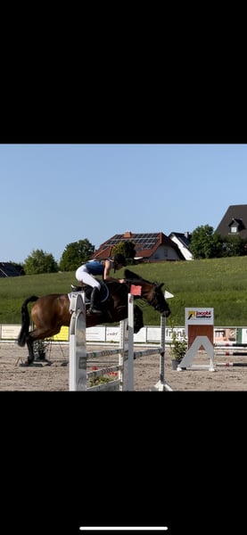 For sale is our 8-year-old pony mare. A striking and spirited mare with qualities, strong character, and ambition. She comes from our own breeding and training. The mare has already been successful at show jumping competitions multiple times. Whether in the arena, outdoor arenas, or on trails (alone or in pairs), everything is no problem. She is also familiar with handling other horses. Only to be placed in the best hands! If you have any further questions or requests, please feel free to contact me. For more information or to arrange a viewing appointment, please get in touch! We look forward to your call!