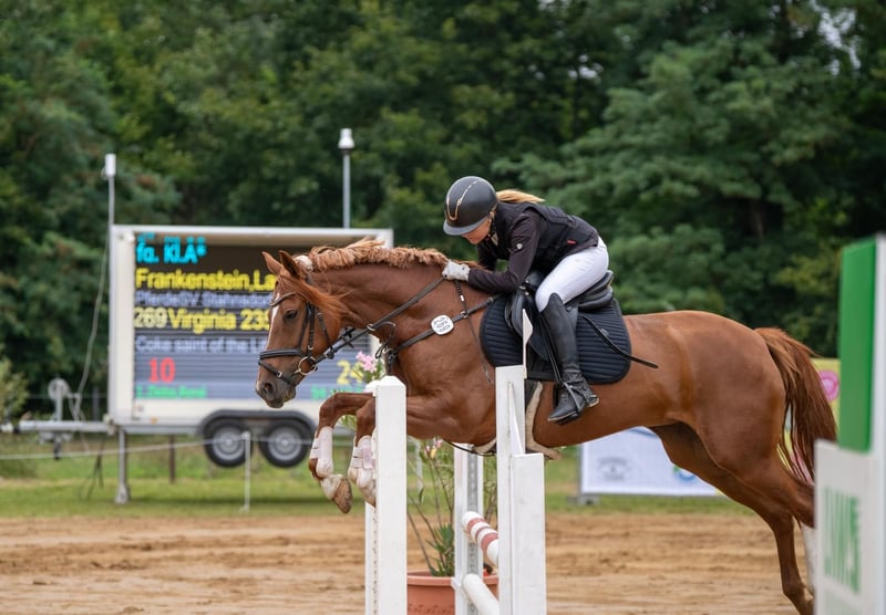 Z ciężkim sercem oddajemy naszą Virginia (Gini), ponieważ moja córka wyrosła już z wieku kucykowego i teraz poszukuje dużego konia. Nasza Virginia to wyjątkowa klacz kucykowa, która podbija serca każdego. Towarzyszyła mojej córce z sukcesami od startów na małych konkursach po świetne miejsca w klasie A** w skokach i ujeżdżeniu. W obu dyscyplinach uzyskała oceny 8. Pod względem ujeżdżenia Gini jest na poziomie L i już pokazuje traversale, galop zewnętrzny oraz skoki w galopie. Pod siodłem jest bardzo miękka i bardzo dobrze wyczuwalna w jeździe, szczególnie w siedzeniu, co czyni ją niezwykle komfortową w użytkowaniu. Już jako młoda kończyna osiągała sukcesy na konkursach. W 2021 roku została wyróżniona tytułem państwowej klaczy-prymientki. Ale Gini to nie tylko skarb na turniejach. To prawdziwa wszechstronna koń, gotowa na różne przygody: jazdę w terenie, jazdę bez siodła, pływanie czy nawet wycieczki nad morze – zawsze zachowuje się spokojnie i niezawodnie. Virginia to 8-letni koń o końskim wzroście, który świetnie dopasowuje się do jeźdźca i jest wygodny dla większych riderów. Przez pięć lat u nas była zawsze zdrowa i nie miała żadnych problemów zdrowotnych. Życzymy Gini kochającego domu, w którym będzie nadal rozwijana i kochana.