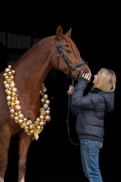 Met pijn in het hart geven wij onze Virginia (Gini) weg, omdat mijn dochter inmiddels uit de ponyleeftijd is gegroeid en nu op zoek is naar een groot paard. Onze Virginia is een bijzonder merrie die ieder hart sneller doet kloppen. Ze heeft mijn dochter succesvol begeleid van de beginnerswestrijd tot mooie placeringen in A** springen en dressuur. In beide disciplines behaalde ze 8-procentscores. Dressuurmatig is Gini L-licentie klaar en toont al traversalen, buitengalop en vliegende wissels. Onder het zadel is ze zeer zacht en fijn te rijden; vooral in het uitzit zit je erg comfortabel op haar. Ook toen ze jonger was, wist ze zich al te onderscheiden. In 2021 werd ze erkend als staatsprämie merrie. Maar Gini is niet alleen op wedstrijden een parel. Ze is een echte allrounder en voor ieder plezier te gebruiken: of het nu gaat om buitenritten, rijden zonder zadel, zwemmen of zelfs een uitstapje naar de zee – ze doet alles braaf en betrouwbaar. Virginia is een 8-jarige eindmaatpony die de ruiter goed ondersteunt en daardoor ook voor grotere ruiters prettig zit. In de vijf jaar dat ze bij ons was, is ze altijd gezond gebleven en had ze geen medische problemen. Wij wensen Gini een liefdevol nieuw thuis, waar ze verder gekoesterd en gestimuleerd wordt.