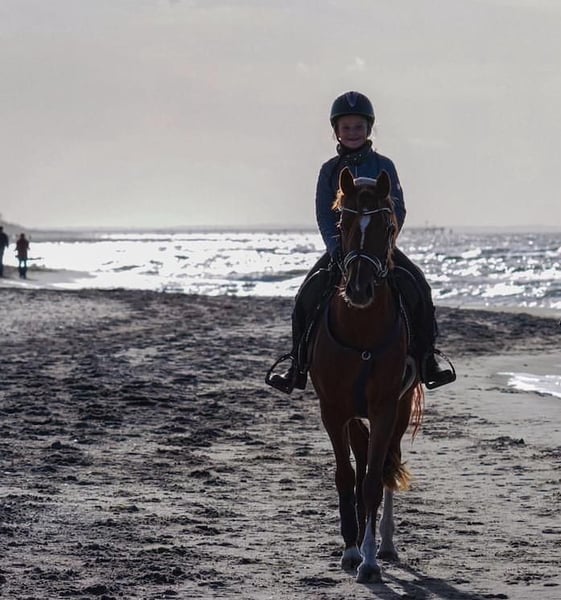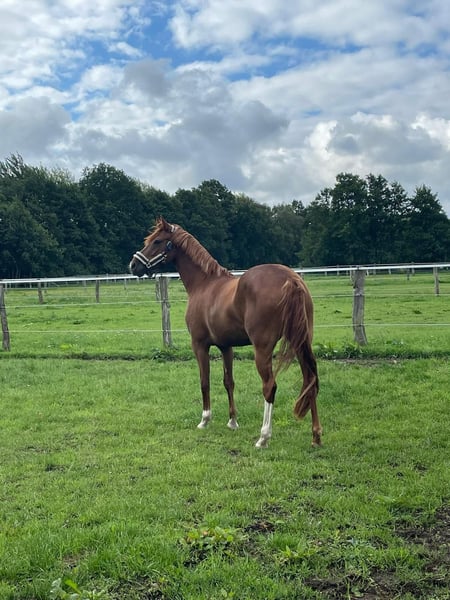 With a heavy heart, we are offering our Virginia (Gini) for sale, as my daughter has outgrown pony riding and is now looking for a large horse. Virginia is a truly special pony mare that captures everyone's heart. She has successfully accompanied my daughter from beginner riding competitions to impressive placements in A** show jumping and dressage. In both disciplines, she received scores of 8. In dressage, Gini is L-level ready and already demonstrates traversals, shoulder-in, as well as flying changes. Under saddle, she is very supple and extremely responsive, with a particularly comfortable sitting trot, even for less experienced riders. She has also been placed in competitions in her younger years. In 2021, she was awarded the State Premium mare title. But Gini is not only a star at competitions. She is a true all-rounder and enjoys every activity: whether hacking out in the countryside, riding bareback, swimming, or even a trip to the beach – she handles everything calmly and reliably. Virginia is an 8-year-old pony mare of full height, providing a very good seat for the rider and making her comfortable for larger riders as well. During the five years she has been with us, she has always been healthy and has had no health issues. We wish Gini a loving new home where she will continue to be cared for, trained, and cherished.