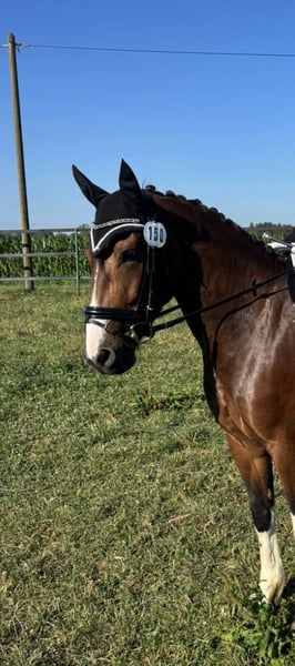Felia ist eine tunierambintionierte 8-jährige Scheckenstute mit einem perfekten Stockmaß von 1,52m für ein Mutter- Tochter- Gespann. Felia ist sitzbequem, hat ein gutes Go und ist zudem kinderlieb. Wir wünschen uns einen neue liebevollen Besitzer mit Erfahrung, der sie weiterhin fördert. Wir geben sie ausschließlich aus privaten Gründen ab und wünschen uns ein neues liebevolles Zuhause. Aktuell steht Felia in einer Box, hat jedoch auch schon in einer Offenstallhaltung mit einer anderen Stute gelebt. Infos auf einen Blick: Name: Felia 62 Geschlecht: Stute Alter: 8 Jahre (9. Lebensjahr) Stockmaß: 1,52m Farbe: Braun-Schecke Barhufer Felias Sattel sowie Schrank mit Inhalt können außerdem günstig erworben werden. Große AKU vorhanden. Für weitere Fragen stehe ich gerne zur Verfügung.