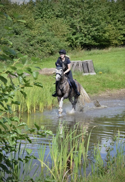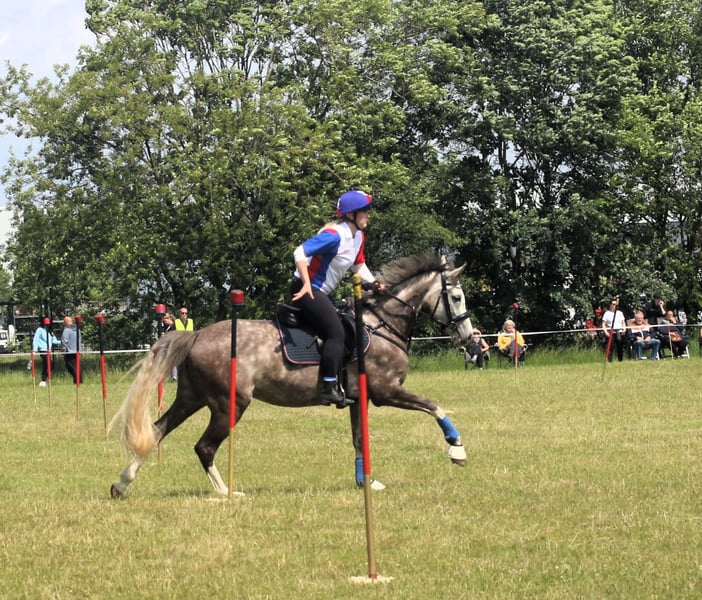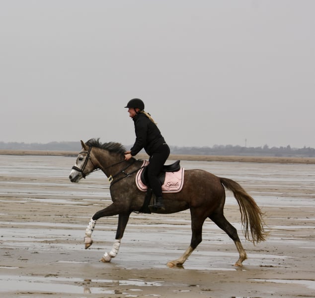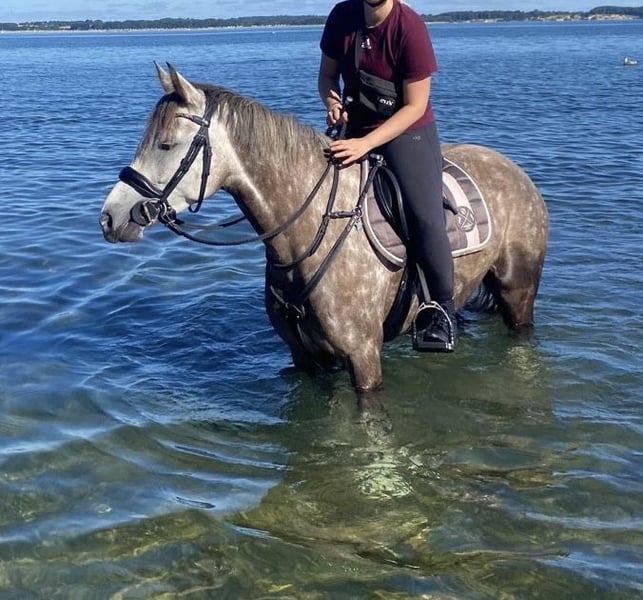 With a heavy heart, I am parting with my XL riding pony mare "Petit Helouis" *2018 by Numerus Clausus out of the state premium mare Petit Hailey Hope by Monte Christo x Hattrick. I acquired her directly from the breeders in 2022. Her siblings are already successfully competing in sports, and the mare herself is versatile: In show jumping, she actively seeks the jump and is very enthusiastic about it. She has gained experience during external training on the arena and in the cross-country park and has presented herself well. However, Helouis was not further developed in this direction, as she was originally intended for the Mounted Games sport, which she has unfortunately "outgrown." Nevertheless, she participated in various tournaments last season and demonstrated her strong nerves and willingness to learn. Helouis is also quite interesting for breeding: She received, among other accolades, the foal premium from the SH/HH horse registry with a score of 8.0, won the title of performance mare in 2021, and was also awarded state premium mare and breed winner at the NORLA mare championship in the same year. The mare not only impresses with her appearance and dynamic gaits but also with a golden character! She has always been very people-oriented, friendly in handling, and 100% clear-headed. During rides in the forest, on the stubble field, or at the beach, she thrives, remains controllable, shows no vices, and pays attention to her rider. She also demonstrates a strong willingness to learn in lunging, groundwork, and other activities, responding very well to voice commands. Due to her age, she still needs a rider who can provide her with calmness and security, as she can be a bit spooky at times (never maliciously!). Helouis can be loaded easily and independently from the start, is farrier-friendly, and has been regularly vaccinated. She is accustomed to open stable housing; currently, she is on pasture during the day and in a box at night. She remains calm even when alone, in unfamiliar environments, or at overnight tournaments. I wish for Helouis to find experienced and nurturing hands that can offer her a 5-star home where fun is not neglected. This is not an urgent sale! Sale to dealers or making her available is not an option, and I kindly ask to refrain from inquiries of this nature. No illnesses are known or have occurred. A veterinary examination/X-rays from 2022 are available with no findings. For inquiries, please contact me by phone or WhatsApp at 01746890440. A trial ride is possible by arrangement.