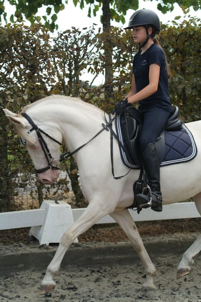 🌟Biebosschen Dandy’s Jewel EC🌟 Met pijn in mijn hart bied ik mijn beste vriendinnetje aan: Jewel is een alleskunner, maar mijn voorkeur ging vooral uit naar dressuur. Ze kent hierbij alle oefeningen van het M-niveau en al sommige oefeningen van het Z-niveau. Jewel is een werkwillige en gevoelige D-pony (1.42m). Hierdoor kan ze af en toe wat zenuwachtig lopen, maar ze zal nooit een stap verkeerd zetten. Ook leert ze zeer snel! Ze heeft ook een enorm springtalent! Ze heeft thuis al 1.05m gesprongen, en is altijd de snelste in de barrage. Hiervoor heeft ze wel een gevorderde ruiter nodig die haar vertrouwen geeft. Indien ze je vertrouwt, springt ze haar hart uit voor jou! Cross Country is zeker ook een optie. We hebben dit al een paar keer gedaan, en dit vindt ze ook geweldig! In de omgang is Jewel een droompony! Zelfs de kleinsten kunnen met haar omgaan! Je kan ook alles met haar doen. Ze is bomproof, loopt mooi naast je, stampt,bokt of steigert niet, laat alles makkelijk doen,… en ze kan zelfs grondwerk! Hierbij kan ze enkel de basis (achteruit, stoppen, vooruit, voetje, spaanse pas,…), maar dit zou ook nog kunnen vorderen. Klein nadeel, ze gaat sinds kort moeilijk op de trailer. Maar na veel oefening, vermoed ik wel dat het zal lukken. Het liefst zie ik haar naar een gevorderd ruitertje gaan die haar alle liefde op en naast het zadel geeft. En een plaats waar ze goed en veel verzorgd wordt. Een goed tehuis is belangrijker dan de prijs! Prijs op aanvraag Filmpjes op aanvraag Plaats: Vlaams-Brabant, België Whatsapp: +32 476 06 57 50